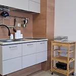 公寓的阳台配有小厨房. 入住Vladan Apartments的客人可以在季节性的室外游泳池放松身心.